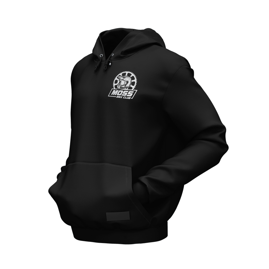 Klærne kommer da med Moss BMX logo på ryggen samt en mindre logo på brystet. Sweatshirt med hette med ribb i mansjett og nederkant. Lomme i front. Tilpasset hodetelefoner.
